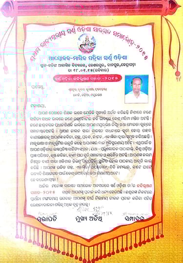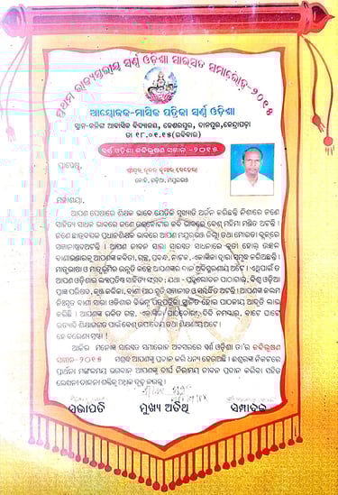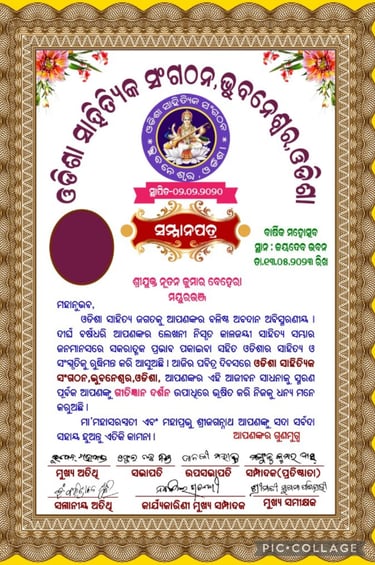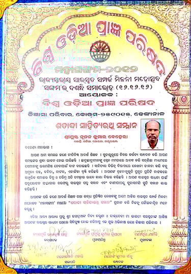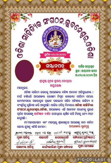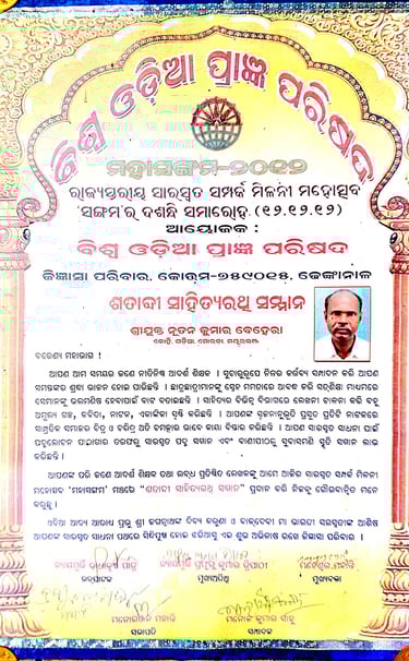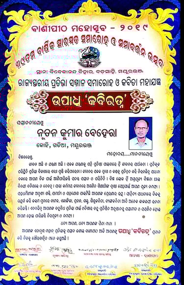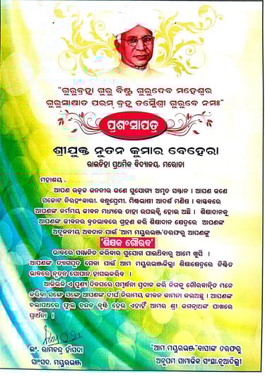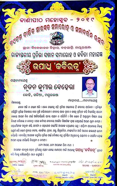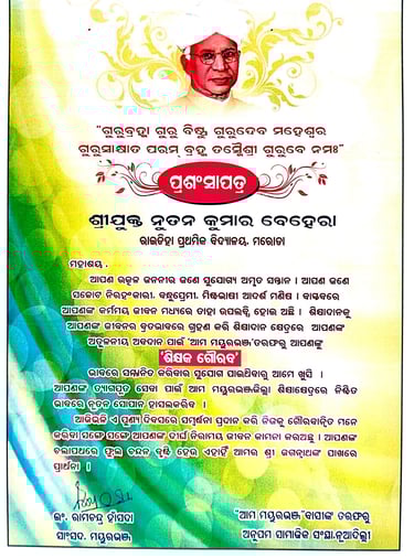 ଶ୍ରୀଯୁକ୍ତ ନୂତନ କୁମାର ବେହେରାଙ୍କୁ ମିଳିଥିବା ସମ୍ମାନ ଓ ଉପାଧି